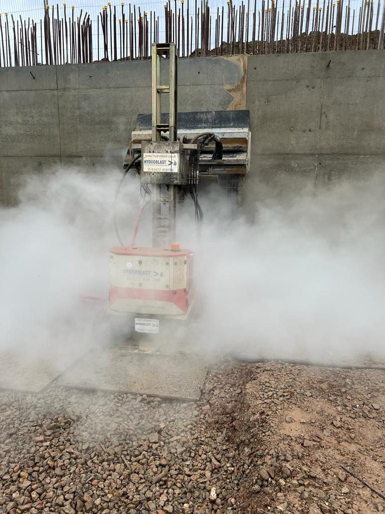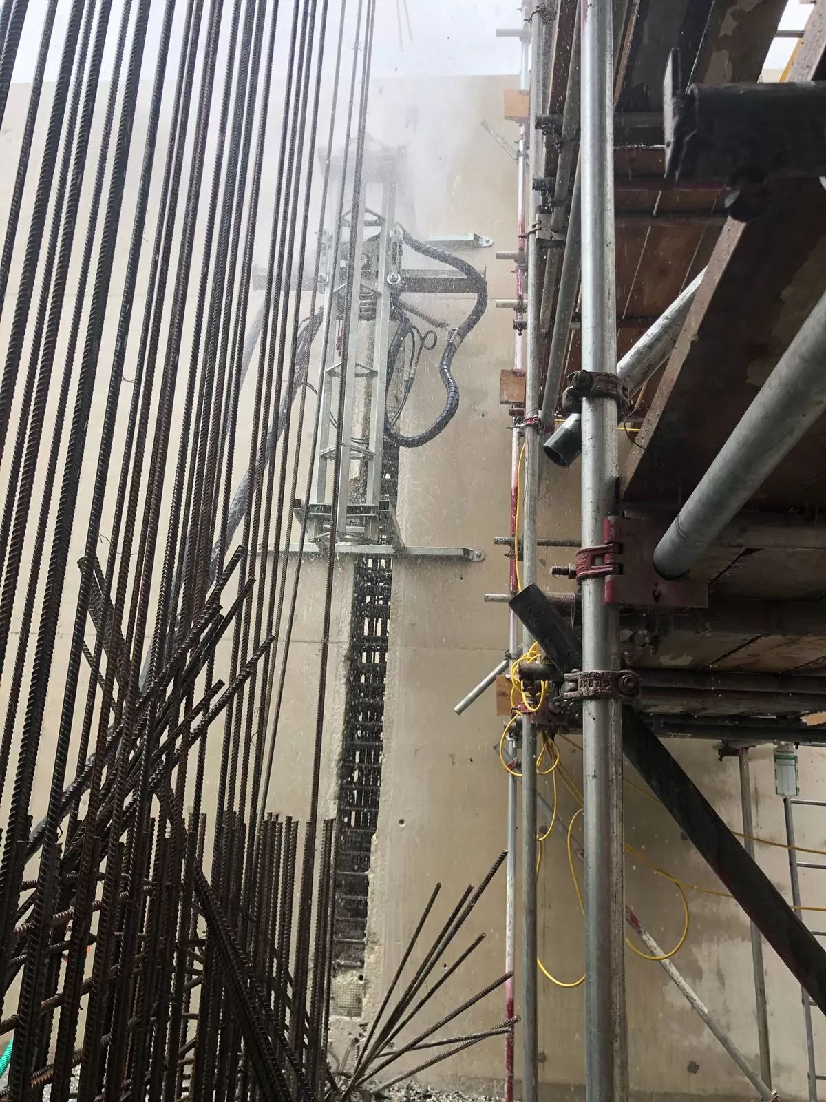 Hydrodemolition at height is the process of removing concrete or other surfaces from elevated structures using high-pressure water jets, rather than traditional methods like jackhammers or scaffolding-based work. By employing specialized robotic equipment, such as the Aqua Cutter HVD, this method allows operatives to safely carry out demolition tasks on tall walls, bridges, or towers without being physically exposed to unnecessary risk. For areas requiring precision or detailed work, experienced operatives can also work at height using the hand lancing technique. The overall process ensures accurate removal, maintains structural integrity, and eliminates the hazards associated with scaffolding, making it a safer, more efficient, and highly controlled solution for high-level concrete removal.